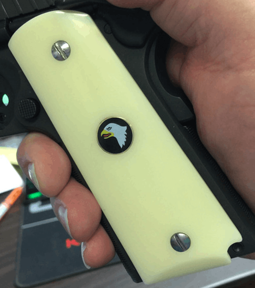 1911 Gun Grips Full Size Faux Ivory with Medallion Most sold 1911 Faux Ivory grips in the USA today for a reason! Our proprietary acrylic Ivory...