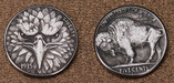 These Grips are Rosewood Laminate with and Eagle "Nickle" on one side and a Buffalo "Nickle" on the other. While these are not actual Nickels they are truly unique. These are weather resistant and durable and made of Laminated Rosewood.