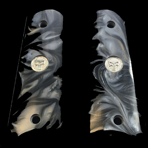 1911 Officer Gun Grips Acrylic Pearl White w/Black Punisher Medallions These beautiful grips are AMBI cut custom acrylic, Faux Mother of Pearl (w...